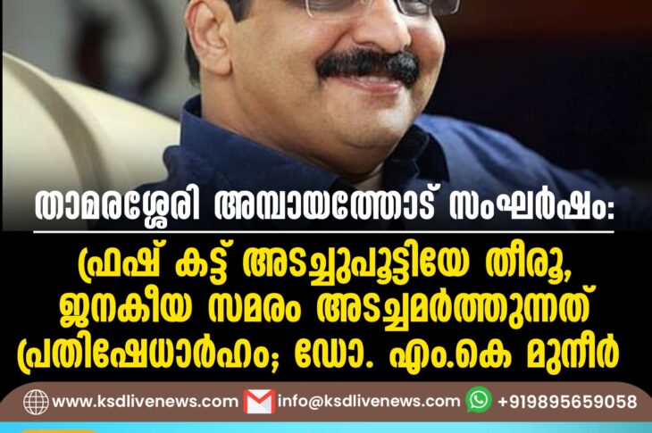പ്രാദേശികം ഫ്രഷ് കട്ട് അറവുമാലിന്യ കേന്ദ്രം അടച്ചുപൂട്ടിയേ തീരൂ;ജനകീയ സമരം അടച്ചമര്ത്തുന്നത് പ്രതിഷേധാര്ഹം: എം.കെ മുനീർ എം.എൽ.എOctober 22, 2025