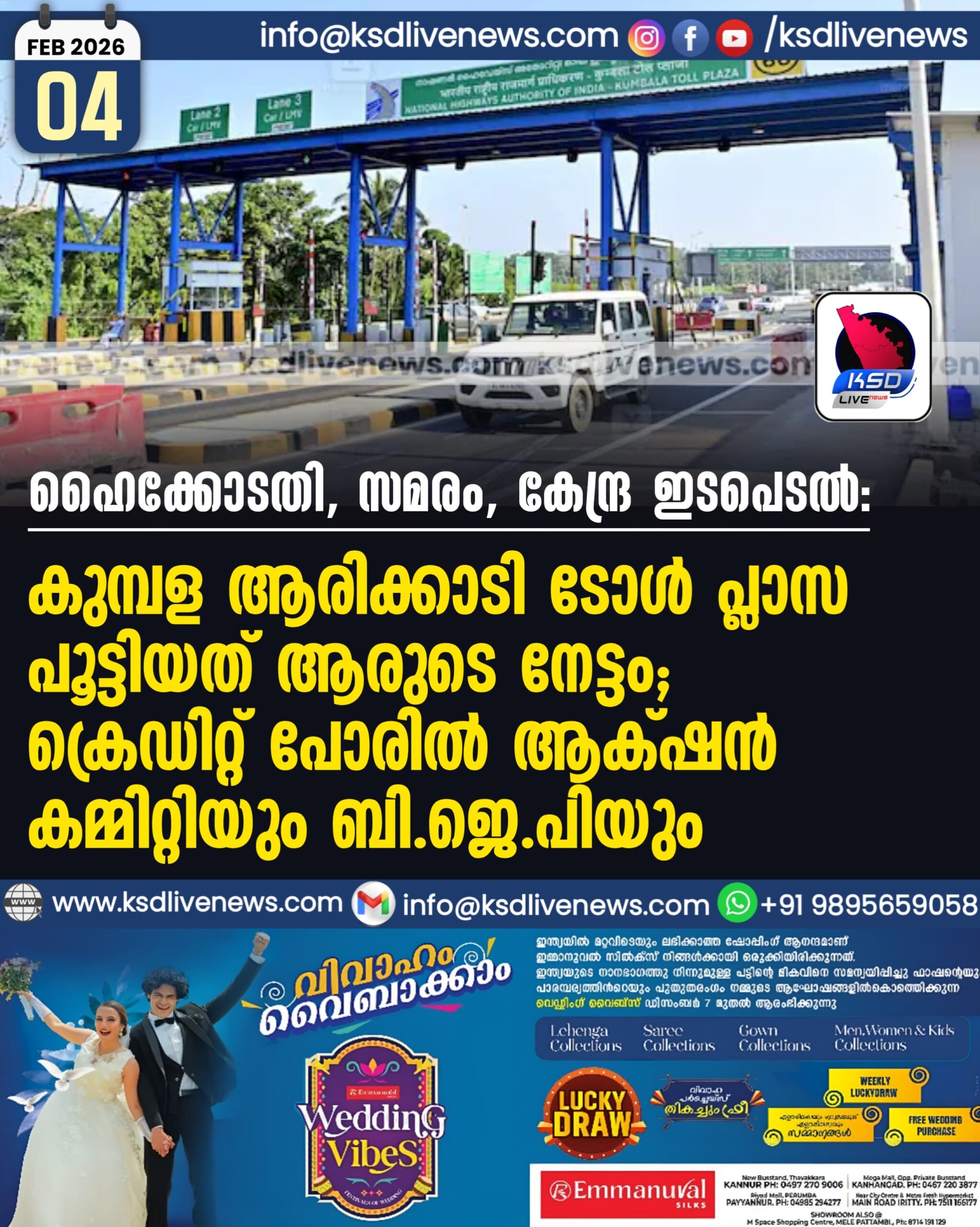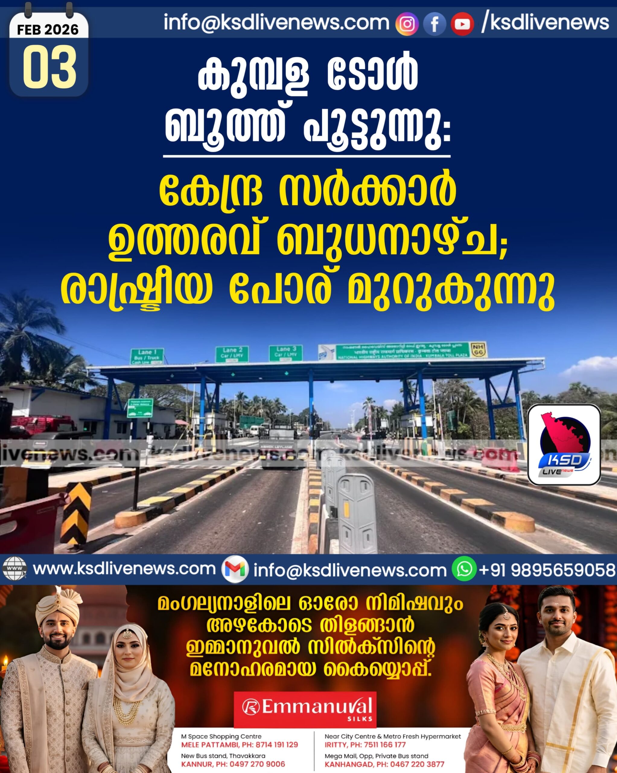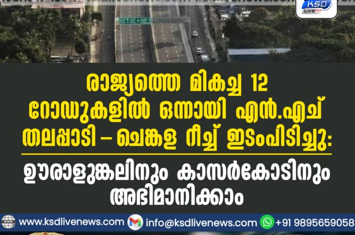 കാസർഗോഡ് രാജ്യത്തെ മികച്ച 12 റോഡുകളിൽ ഒന്നായി എൻ.എച് തലപ്പാടി-ചെങ്കള റീച്ച് ഇടംപിടിച്ചു:ഊരാളുങ്കലിനും കാസർകോടിനും അഭിമാനിക്കാംFebruary 4, 2026