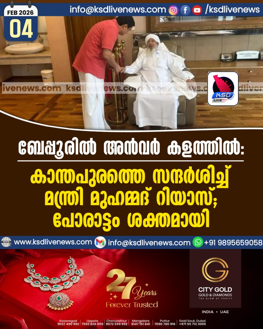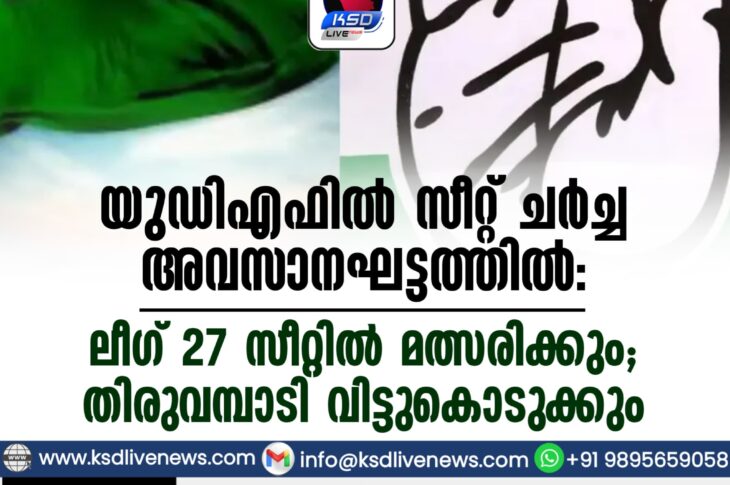 കേരളം യുഡിഎഫിൽ സീറ്റ് ചർച്ച അവസാനഘട്ടത്തിൽ;ലീഗ് 27 സീറ്റിൽ മത്സരിക്കും; തിരുവമ്പാടി വിട്ടുകൊടുക്കുംFebruary 4, 2026