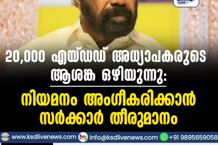 കേരളം 20,000 എയ്ഡഡ് അധ്യാപകരുടെ ആശങ്ക ഒഴിയുന്നു, നിയമനം അംഗീകരിക്കാൻ സർക്കാർ തീരുമാനംFebruary 18, 2026