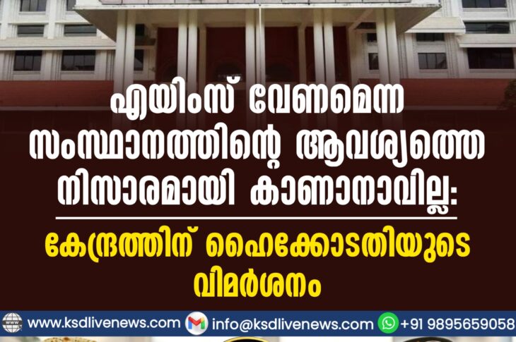 കേരളം എയിംസ് വേണമെന്ന സംസ്ഥാനത്തിന്റെ ആവശ്യത്തെ നിസാരമായി കാണാനാവില്ല: കേന്ദ്രത്തിന് ഹൈക്കോടതിയുടെ വിമർശനംFebruary 25, 2026