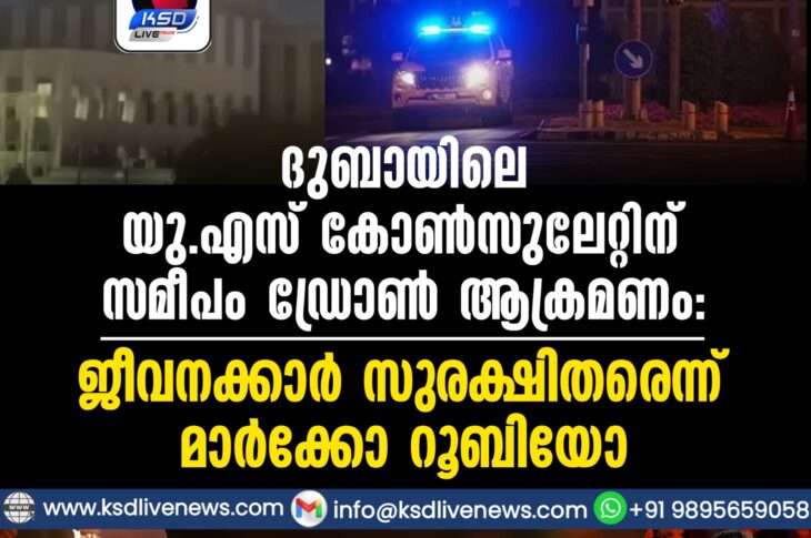 ഗൾഫ് ദുബായിലെ യു.എസ് കോൺസുലേറ്റിന് സമീപം ഡ്രോൺ ആക്രമണം: ജീവനക്കാർ സുരക്ഷിതരെന്ന് മാർക്കോ റൂബിയോMarch 4, 2026