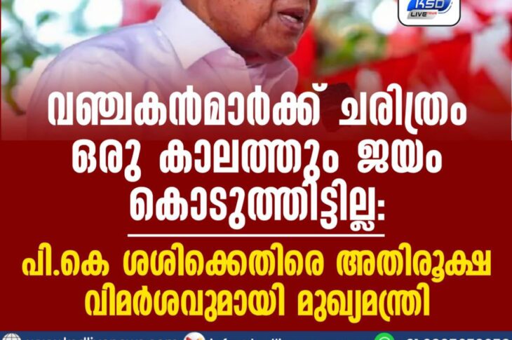 കേരളം വഞ്ചകന്മാര്ക്ക് ചരിത്രം ഒരു കാലത്തും ജയം കൊടുത്തിട്ടില്ല; പി കെ ശശിക്കെതിരെ അതിരൂക്ഷ വിമര്ശവുമായി മുഖ്യമന്ത്രിMarch 28, 2026