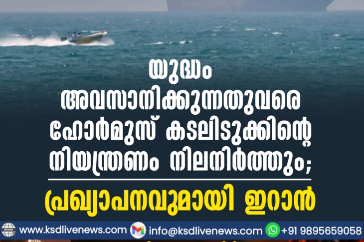 വിദേശം യുദ്ധം അവസാനിക്കുന്നതുവരെ ഹോർമുസ് കടലിടുക്കിന്റെ നിയന്ത്രണം നിലനിർത്തും; പ്രഖ്യാപനവുമായി ഇറാൻApril 18, 2026