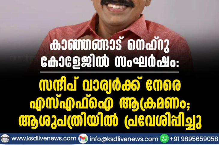 പ്രാദേശികം കാഞ്ഞങ്ങാട് നെഹ്റു കോളേജിൽ സംഘർഷം: സന്ദീപ് വാര്യർക്ക് നേരെ എസ്.എഫ്.ഐ. ആക്രമണം; ആശുപത്രിയിൽ പ്രവേശിപ്പിച്ചുApril 7, 2026