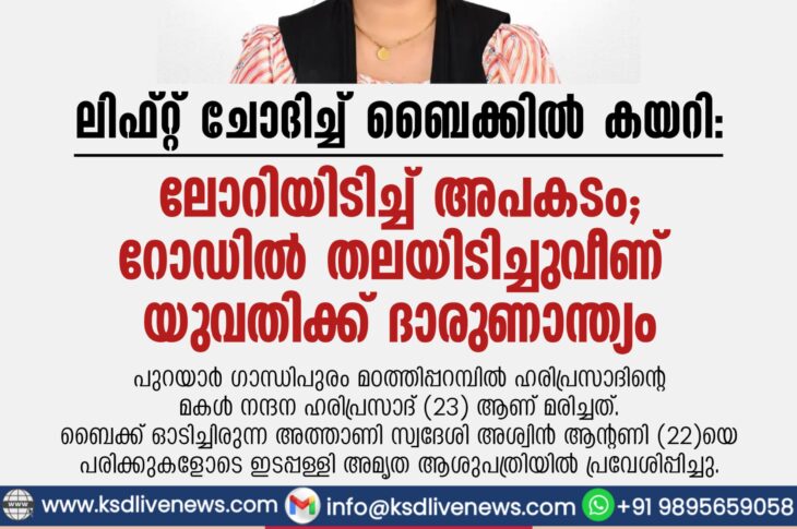 കേരളം ലിഫ്റ്റ് ചോദിച്ച് ബൈക്കിൽ കയറി, ലോറിയിടിച്ച് അപകടം; റോഡിൽ തലയിടിച്ചുവീണ് യുവതിക്ക് ദാരുണാന്ത്യംApril 7, 2026