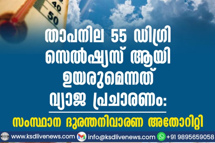 കേരളം താപനില 55 ഡിഗ്രി സെൽഷ്യസ് ആയി ഉയരുമെന്നത് വ്യാജ പ്രചാരണം: സംസ്ഥാന ദുരന്തനിവാരണ അതോറിറ്റിApril 13, 2026