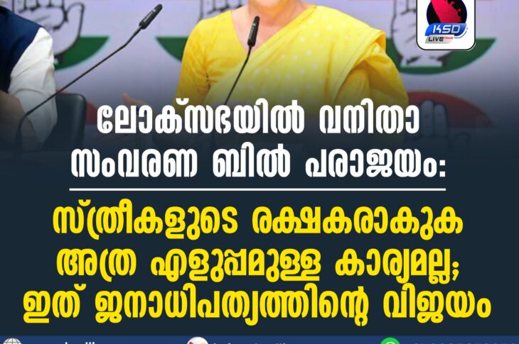 ദേശീയം ലോക്സഭയിൽ വനിതാ സംവരണ ബിൽ പരാജയം; സ്ത്രീകളുടെ രക്ഷകരാകുക അത്ര എളുപ്പമുള്ള കാര്യമല്ല; ഇത് ജനാധിപത്യത്തിന്റെ വിജയംApril 18, 2026