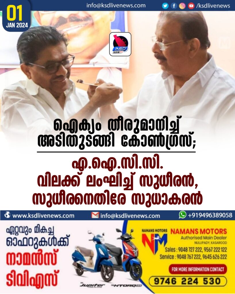 ഐക്യം തീരുമാനിച്ച് അടിതുടങ്ങി കോൺഗ്രസ്; എ.ഐ.സി.സി. വിലക്ക് ലംഘിച്ച് സുധീരന്, സുധീരനെതിരേ സുധാകരന്