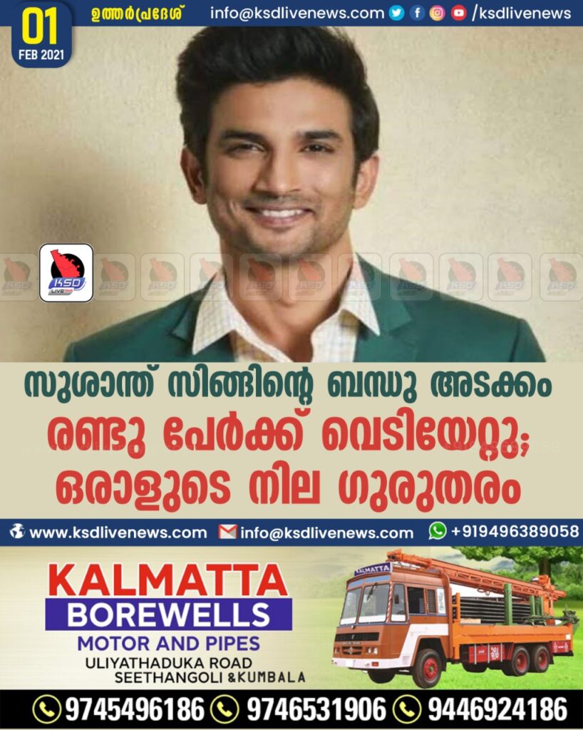 സുശാന്ത് സിങ്ങിന്റെ ബന്ധു അടക്കം രണ്ടുപേര്ക്ക് വെടിയേറ്റു; ഒരാളുടെ നില ഗുരുതരം
