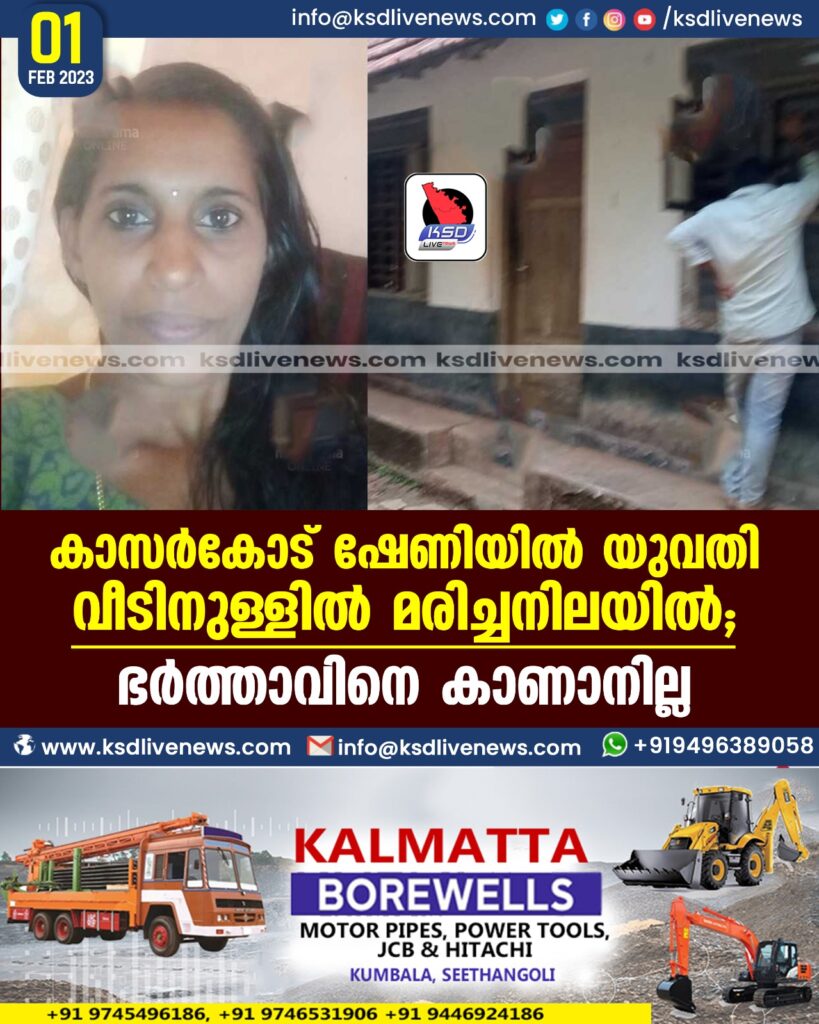 കാസർകോട്ട് യുവതി വീടിനുള്ളില് മരിച്ചനിലയിൽ; ഭർത്താവിനെ കാണാനില്ല
