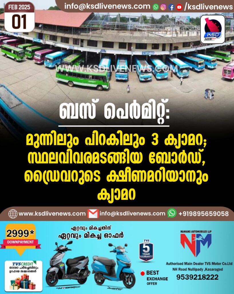 ബസ് പെർമിറ്റ്: മുന്നിലും പിറകിലും 3 ക്യാമറ, സ്ഥലവിവരമടങ്ങിയ ബോർഡ്, ഡ്രൈവറുടെ ക്ഷീണമറിയാനും ക്യാമറ