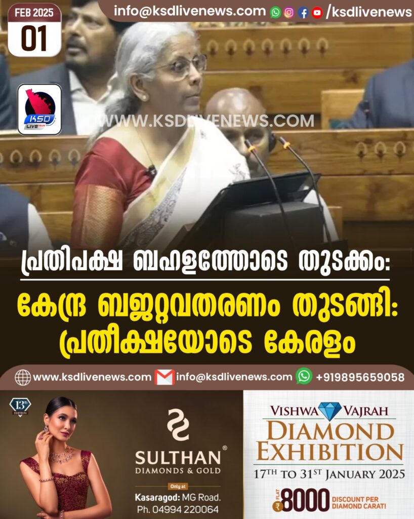 പ്രതിപക്ഷ ബഹളത്തോടെ തുടക്കം; കേന്ദ്ര ബജറ്റവതരണം തുടങ്ങി, പ്രതീക്ഷയോടെ കേരളം