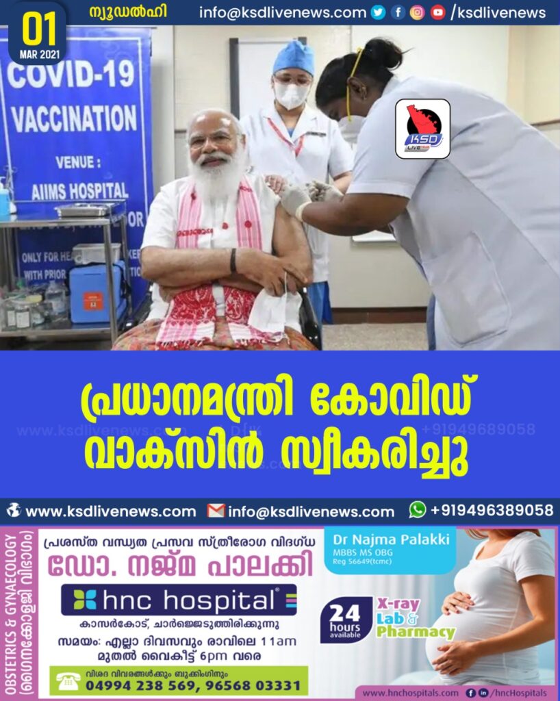 പ്രധാനമന്ത്രി കോവിഡ് വാക്സിൻ സ്വീകരിച്ചു