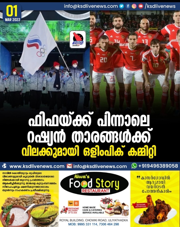 ഫിഫയ്ക്ക് പിന്നാലെ റഷ്യന് താരങ്ങള്ക്ക് വിലക്കുമായി ഒളിംപിക് കമ്മിറ്റി