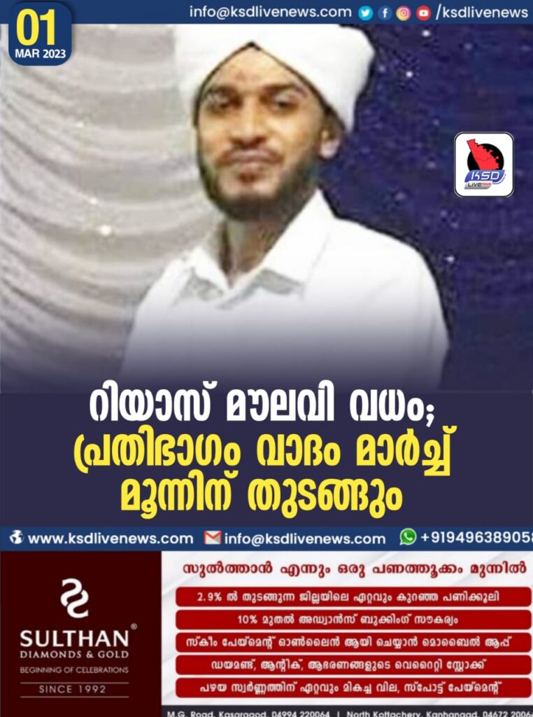റിയാസ് മൗലവി വധം; പ്രതിഭാഗം വാദം മാര്ച്ച് മൂന്നിന് തുടങ്ങും