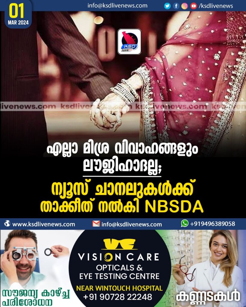 എല്ലാ മിശ്ര വിവാഹങ്ങളും ലൗജിഹാദല്ല, ന്യൂസ് ചാനലുകൾക്ക് താക്കീത് നൽകി NBSDA