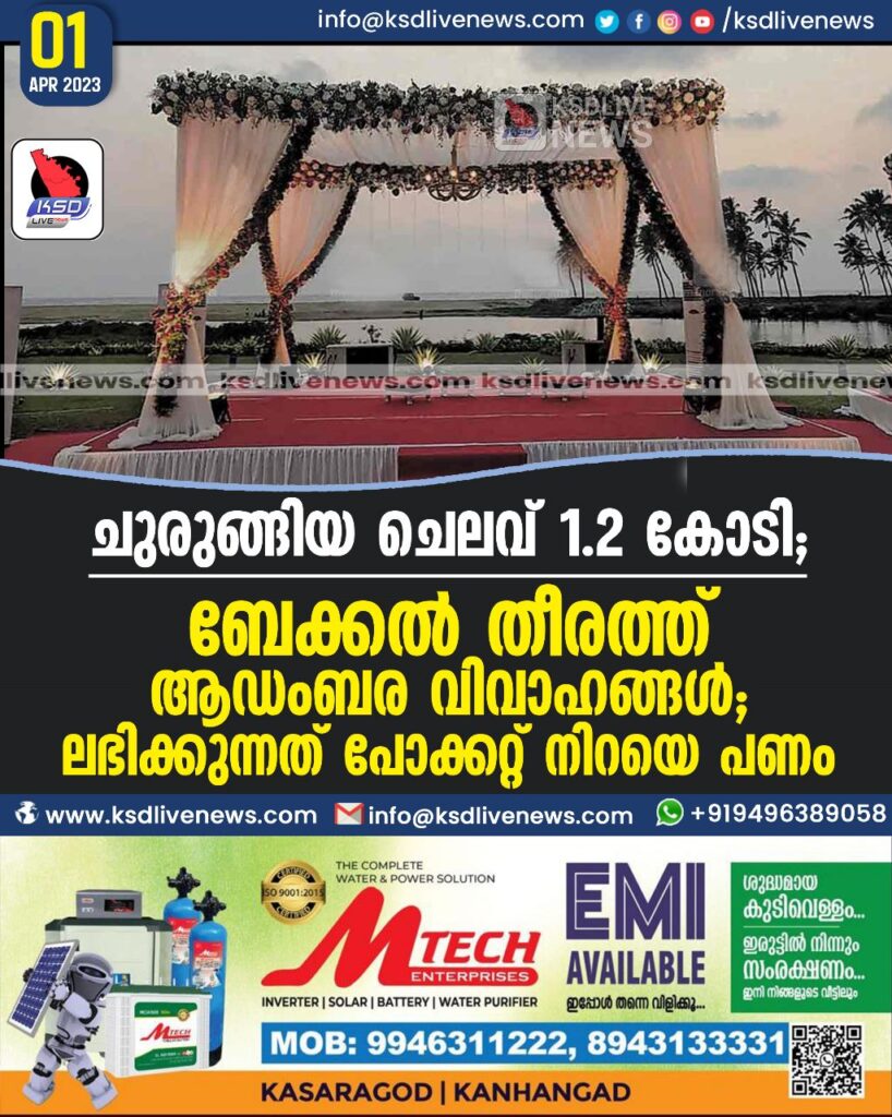 ചുരുങ്ങിയ ചെലവ് 1.2 കോടി; ബേക്കൽ തീരത്ത് ആഡംബര വിവാഹങ്ങൾ, ലഭിക്കുന്നത് പോക്കറ്റ് നിറയെ പണം