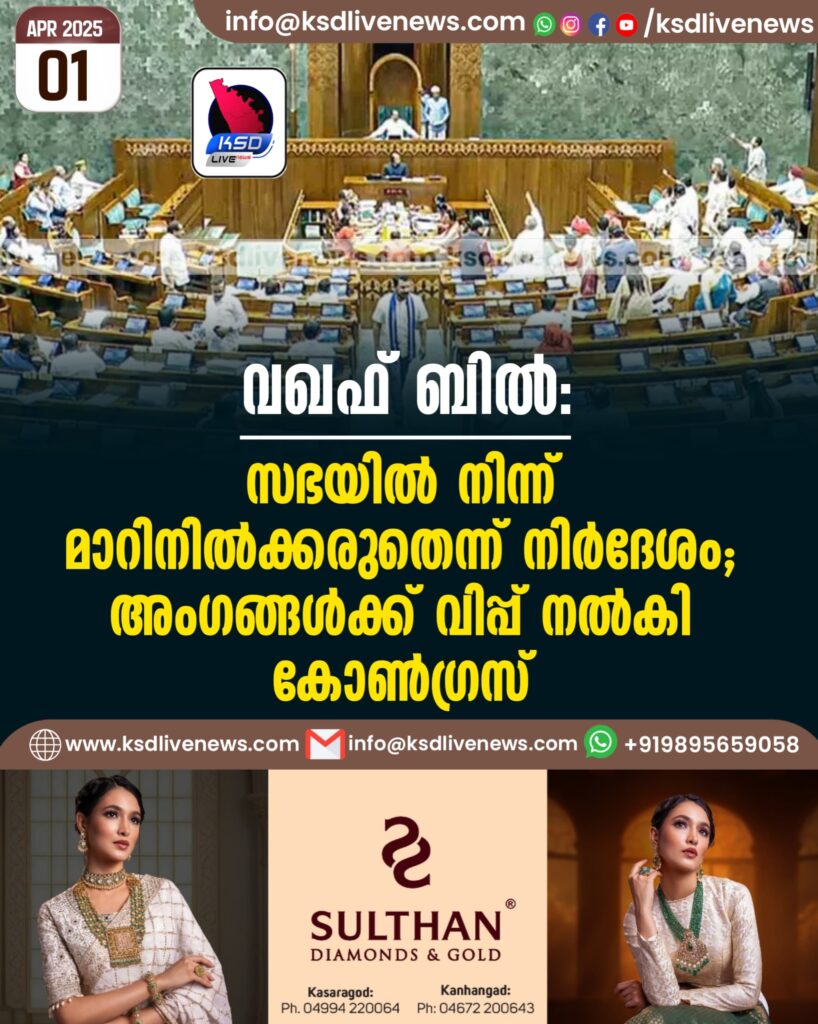 വഖഫ് ബില്: സഭയില്നിന്ന് മാറിനില്ക്കരുതെന്ന് നിര്ദേശം, അംഗങ്ങള്ക്ക് വിപ്പ് നല്കി കോണ്ഗ്രസ്