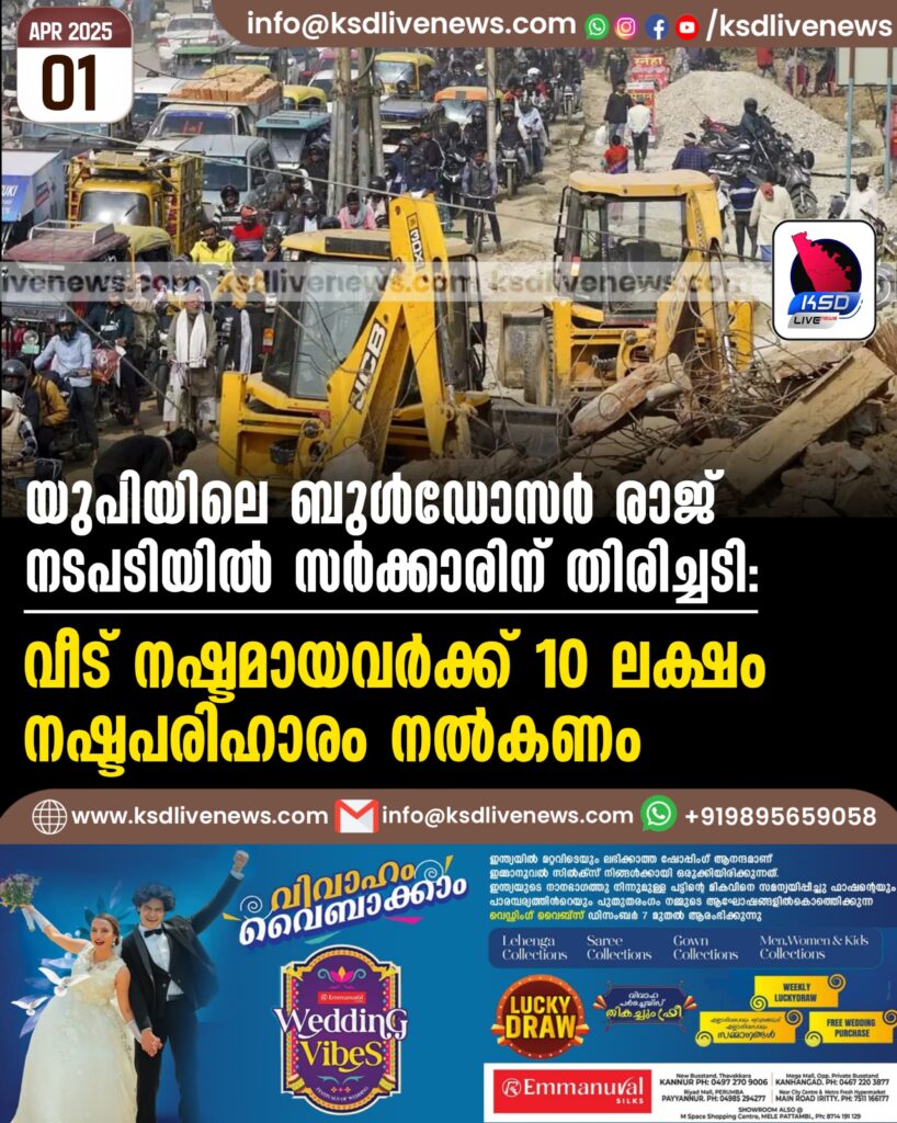 യുപിയിലെ ബുൾഡോസർ രാജ് നടപടിയിൽ സർക്കാരിന് തിരിച്ചടി; വീട് നഷ്ടമായവർക്ക് 10 ലക്ഷം നഷ്ടപരിഹാരം നൽകണം