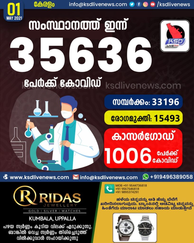 കോവിഡിൽ വിറച്ച് കേരളം ; സംസ്ഥാനത്ത് ഇന്ന് 35636 പേർക്ക് കോവിഡ് സ്ഥിരീകരിച്ചു. സമ്പർക്കം വഴി 33196 പേർക്കും ; ആശ്വാസമായി 15493 പേർക്ക് രോഗ മുക്തിയും ; കാസർഗോഡ് ജില്ലയിൽ 1006 പേർക്ക് പുതിയ കോവിഡ് കേസുകൾ ; മരണം 48