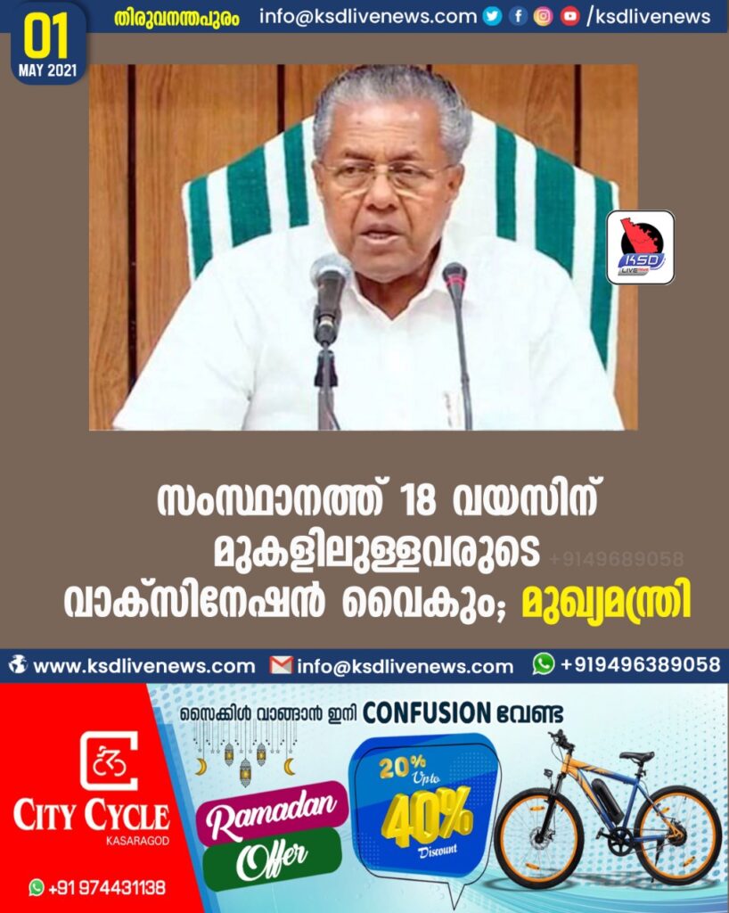 സംസ്ഥാനത്ത് 18 വയസിന് മുകളിലുള്ളവരുടെ വാക്സിനേഷന് വൈകും; മുഖ്യമന്ത്രി