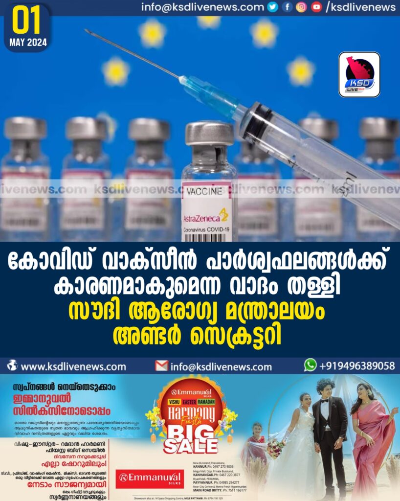 കോവിഡ് വാക്സീൻ പാർശ്വഫലങ്ങൾക്ക് കാരണമാകുമെന്ന വാദം തള്ളി സൗദി ആരോഗ്യ മന്ത്രാലയം അണ്ടർ സെക്രട്ടറി