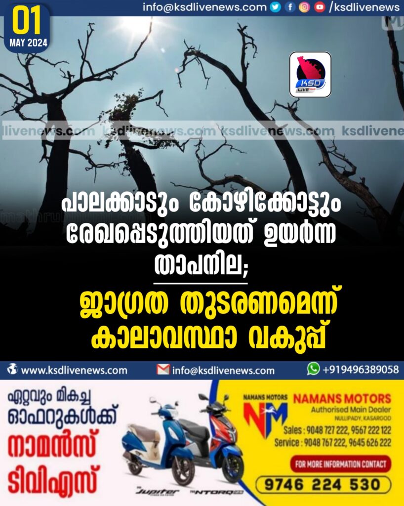 പാലക്കാടും കോഴിക്കോട്ടും രേഖപ്പെടുത്തിയത് ഉയര്‍ന്ന താപനില; ജാഗ്രത തുടരണമെന്ന് കാലാവസ്ഥാ വകുപ്പ്‌