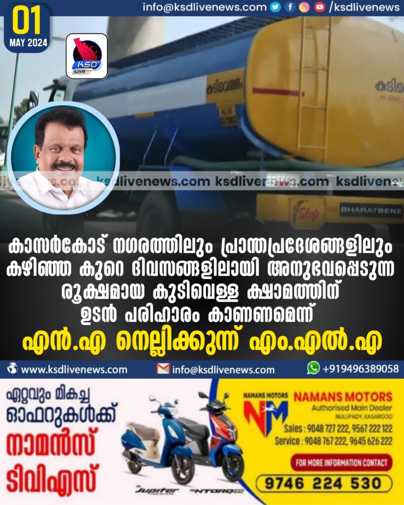 കാസർകോട് നഗരത്തിലും പ്രാന്തപ്രദേശങ്ങളിലും കഴിഞ്ഞ കുറെ ദിവസങ്ങളിലായി അനുഭവപ്പെടുന്ന രൂക്ഷമായ കുടിവെള്ള ക്ഷാമത്തിന് ഉടൻ പരിഹാരം കാണണമെന്ന് എൻ.എ നെല്ലിക്കുന്ന് എം.എൽ.എ