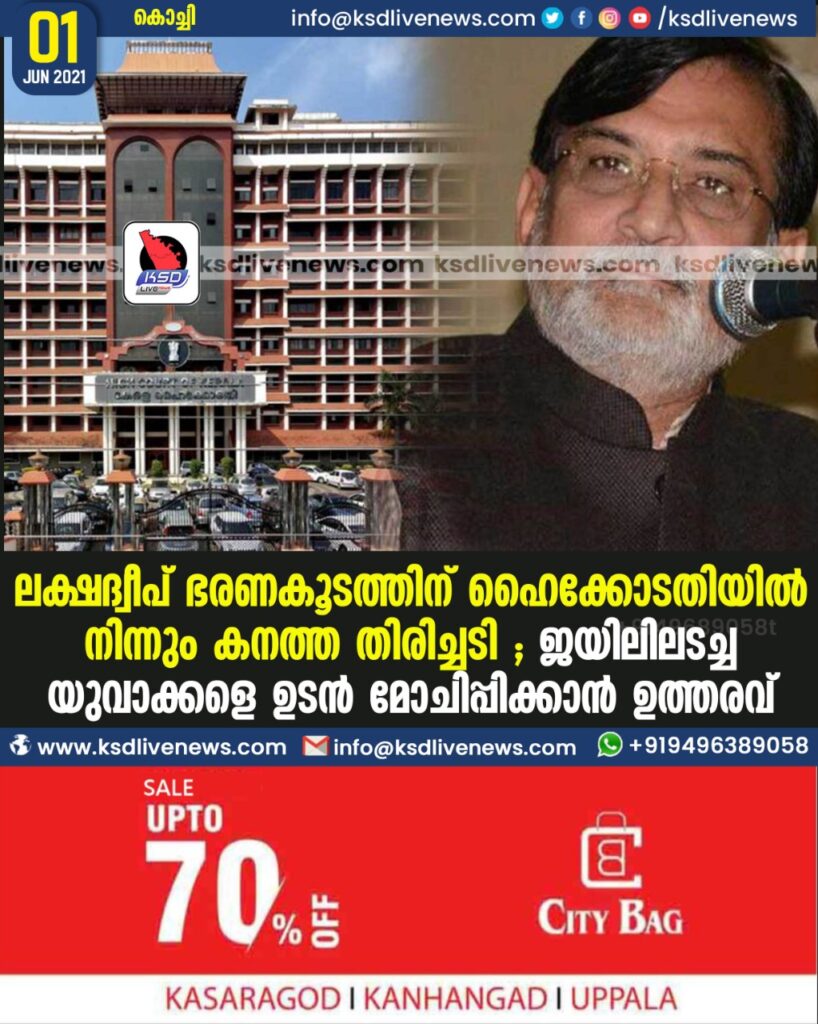 ലക്ഷദ്വീപ് ഭരണകൂടത്തിന് ഹൈക്കോടതിയില് നിന്നും കനത്ത തിരിച്ചടി ; ജയിലിലടച്ച യുവാക്കളെ ഉടന് മോചിപ്പിക്കാന് ഉത്തരവ്