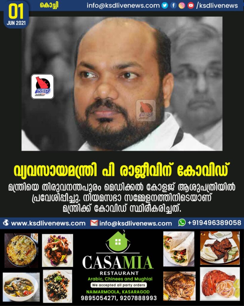 വ്യവസായമന്ത്രി പി രാജീവിന് കോവിഡ്