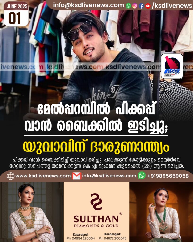 മേൽപ്പറമ്പിൽ പിക്കപ്പ് വാൻ ബൈക്കിൽ ഇടിച്ചു; യുവാവിന് ദാരുണാന്ത്യം