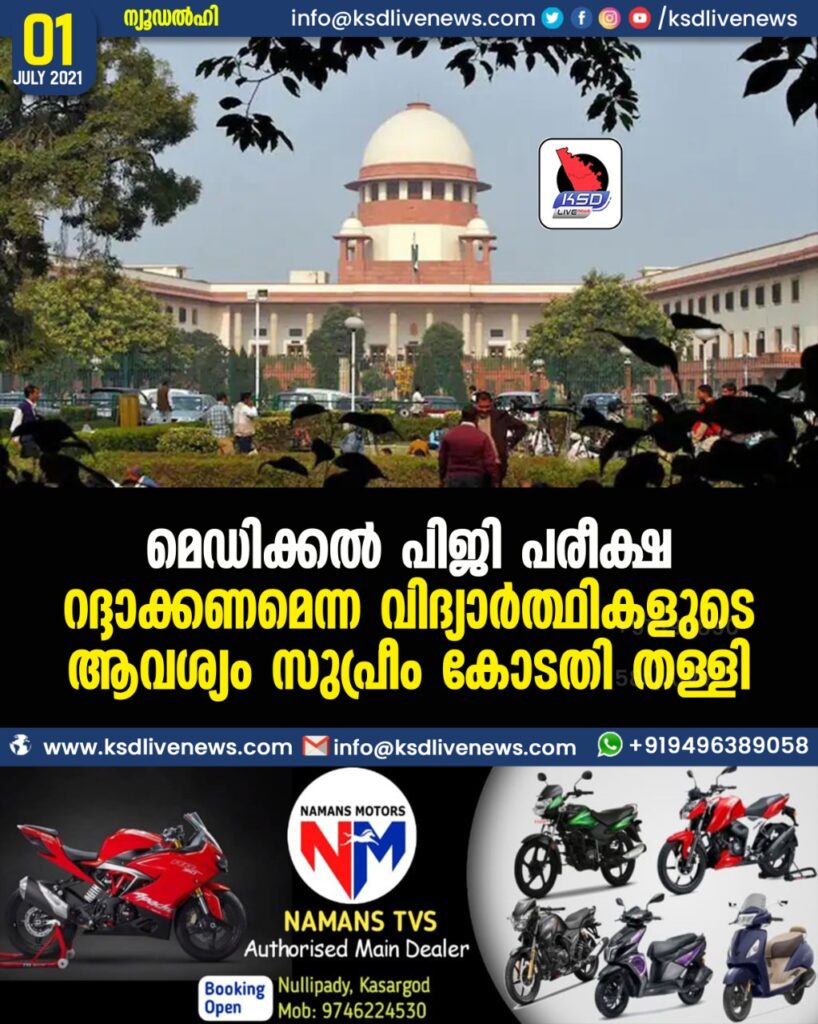 മെഡിക്കൽ പിജി പരീക്ഷ റദ്ദാക്കണമെന്ന വിദ്യാർത്ഥികളുടെ ആവശ്യം സുപ്രീം കോടതി തള്ളി