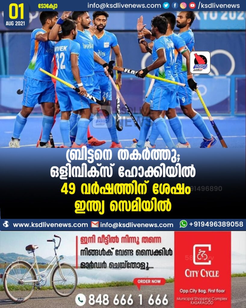 ബ്രിട്ടനെ തകർത്തു; ഒളിമ്പിക്സ് ഹോക്കിയിൽ 49 വർഷത്തിന് ശേഷം ഇന്ത്യ സെമിയിൽ