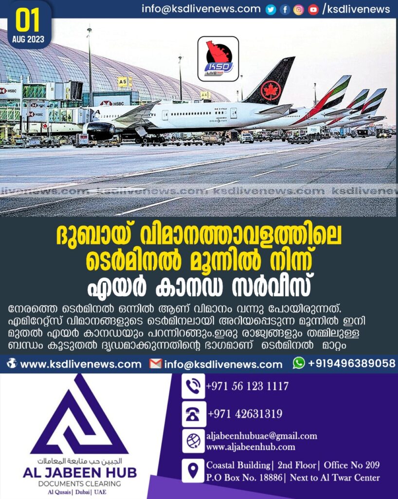 ദുബായ് വിമാനത്താവളത്തിലെ ടെർമിനൽ മൂന്നിൽ നിന്ന് എയർ കാനഡ സർവീസ്