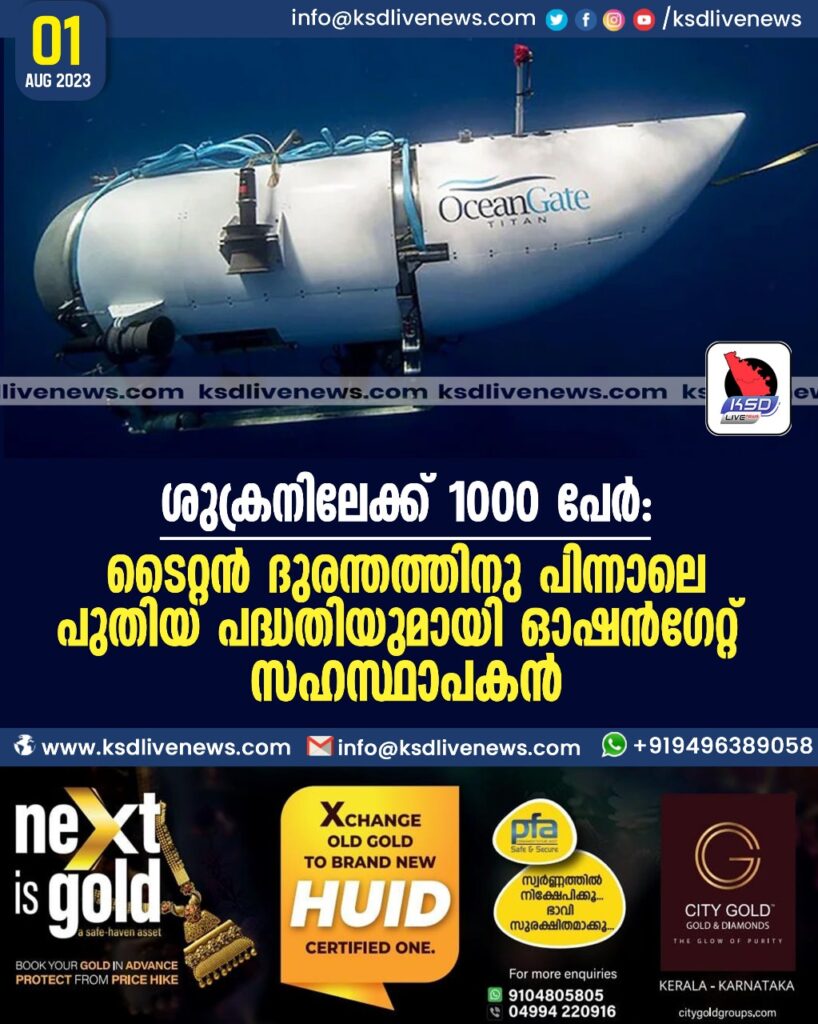 ശുക്രനിലേക്ക് 1000 പേർ’: ടൈറ്റൻ ദുരന്തത്തിനു പിന്നാലെ പുതിയ പദ്ധതിയുമായി ഓഷൻഗേറ്റ് സഹസ്ഥാപകൻ