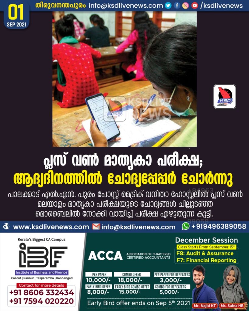 പ്ലസ് വൺ മാതൃകാ പരീക്ഷ; ആദ്യദിനത്തിൽ ചോദ്യപ്പേപ്പർ ചോർന്നു