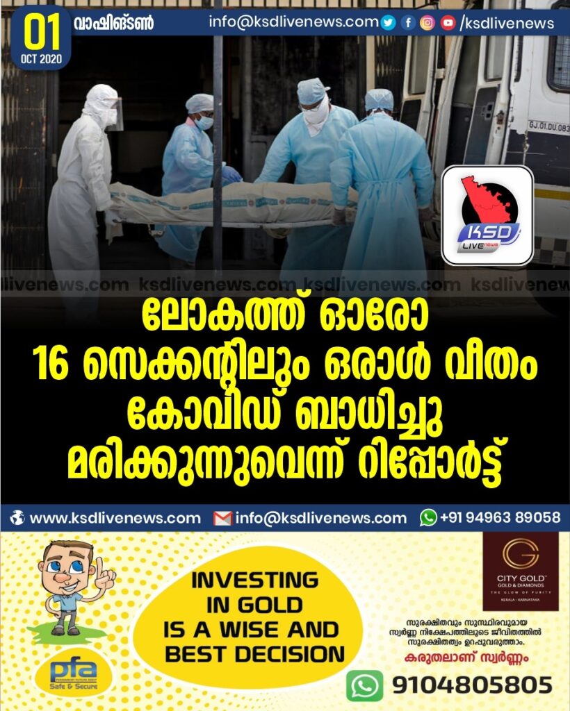ലോകത്ത് ഓരോ 16 സെക്കന്റിലും ഒരാൾ വീതം കോവിഡ് ബാധിച്ചു മരിക്കുന്നുവെന്ന് റിപ്പോർട്ട്