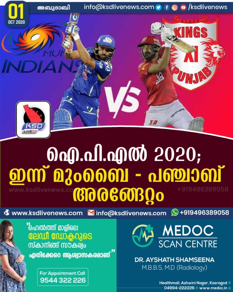 ഐ.പി.എൽ 2020 : ഇന്ന് മുംബൈ – പഞ്ചാബ് അരങ്ങേറ്റം