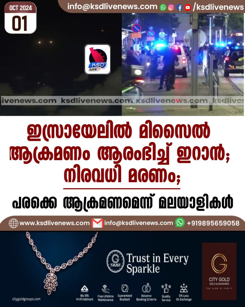 ഇസ്രായേലിൽ മിസൈൽ ആക്രമണം ആരംഭിച്ച് ഇറാൻ; നിരവധി പേർ കൊല്ലപ്പെട്ടതായി വിവരം, പരക്കെ ആക്രമണമെന്ന് മലയാളികൾ