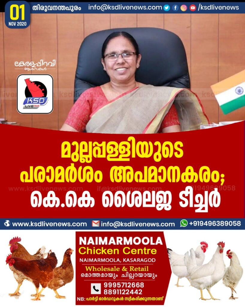 മുല്ലപ്പള്ളിയുടെ പരാമർശം അപമാനകരം ; കെ.കെ ശൈലജ ടീച്ചർ