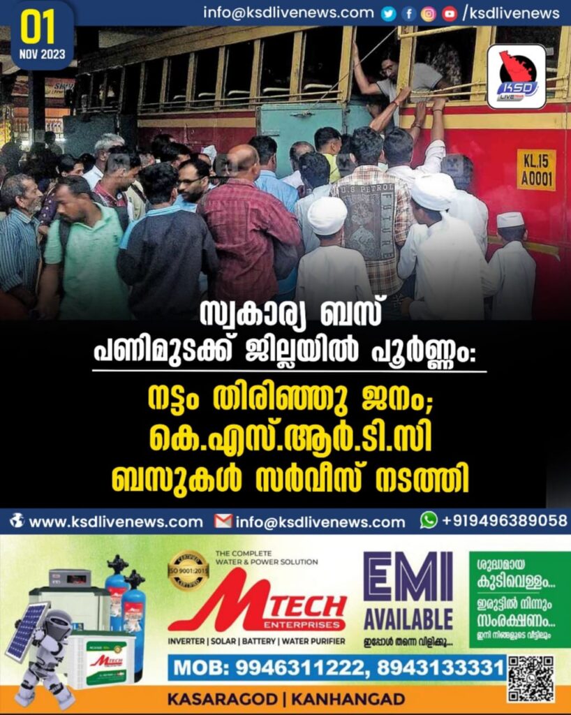 സ്വകാര്യ ബസ് പണിമുടക്ക് ജില്ലയിൽ പൂർണ്ണം: നട്ടം തിരിഞ്ഞു ജനം; കെഎസ്ആർടിസി ബസുകൾ സർവീസ് നടത്തി