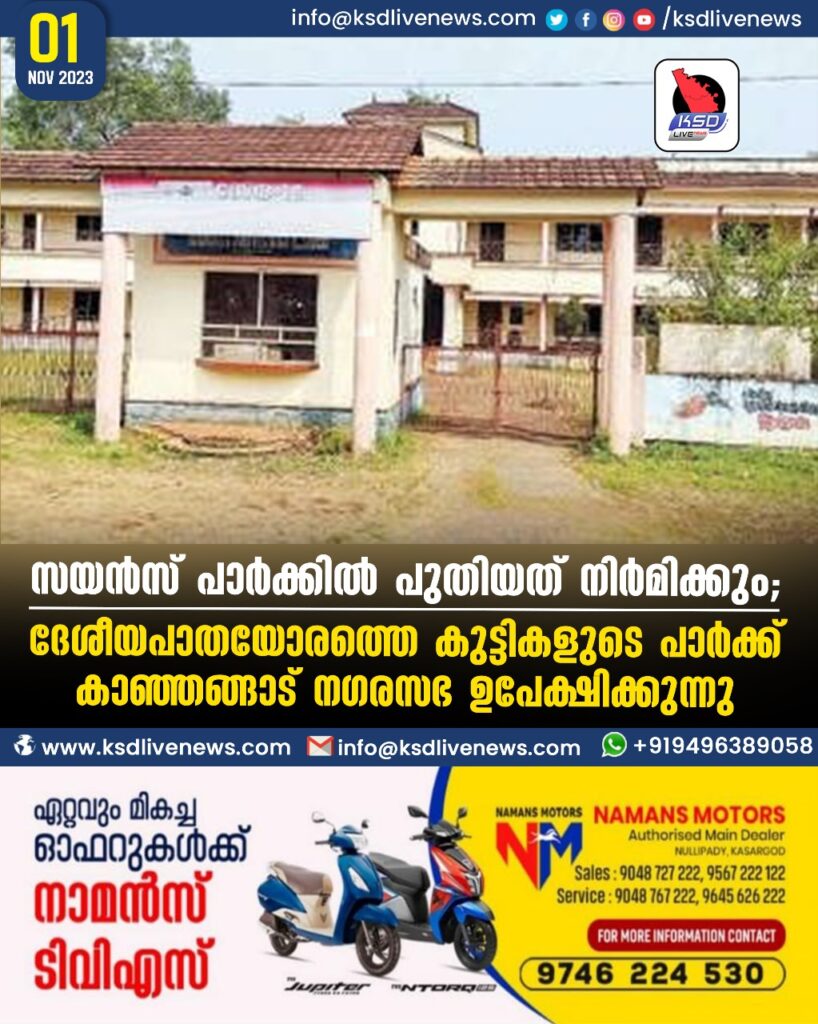 സയൻസ് പാർക്കിൽ പുതിയത് നിർമിക്കും; ദേശീയപാതയോരത്തെ കുട്ടികളുടെ പാർക്ക് കാഞ്ഞങ്ങാട് നഗരസഭ ഉപേക്ഷിക്കുന്നു