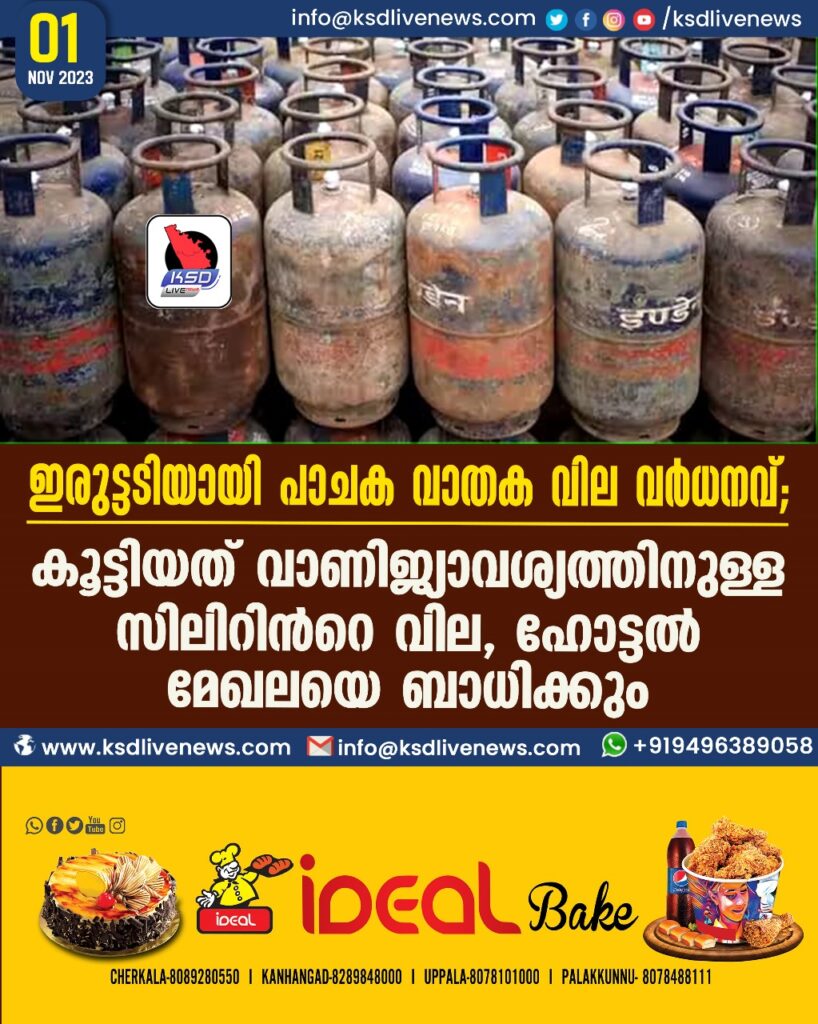 ഇരുട്ടടിയായി പാചക വാതക വില വർധനവ്;കൂട്ടിയത് വാണിജ്യാവശ്യത്തിനുള്ള സിലിണ്ടറിന്റെ വില, ഹോട്ടൽ മേഖലയെ ബാധിക്കും