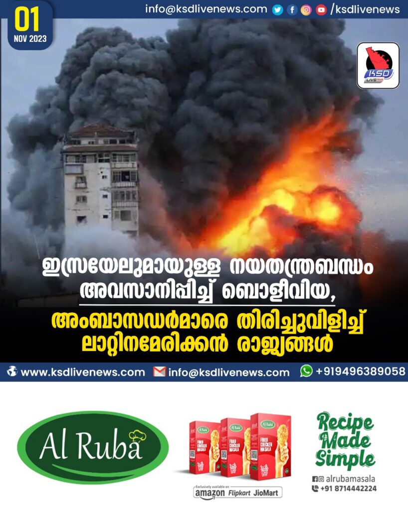 ഇസ്രയേലുമായുള്ള നയതന്ത്രബന്ധം അവസാനിപ്പിച്ച് ബൊളീവിയ, അംബാസഡര്മാരെ തിരിച്ചുവിളിച്ച് ലാറ്റിനമേരിക്കൻ രാജ്യങ്ങള്