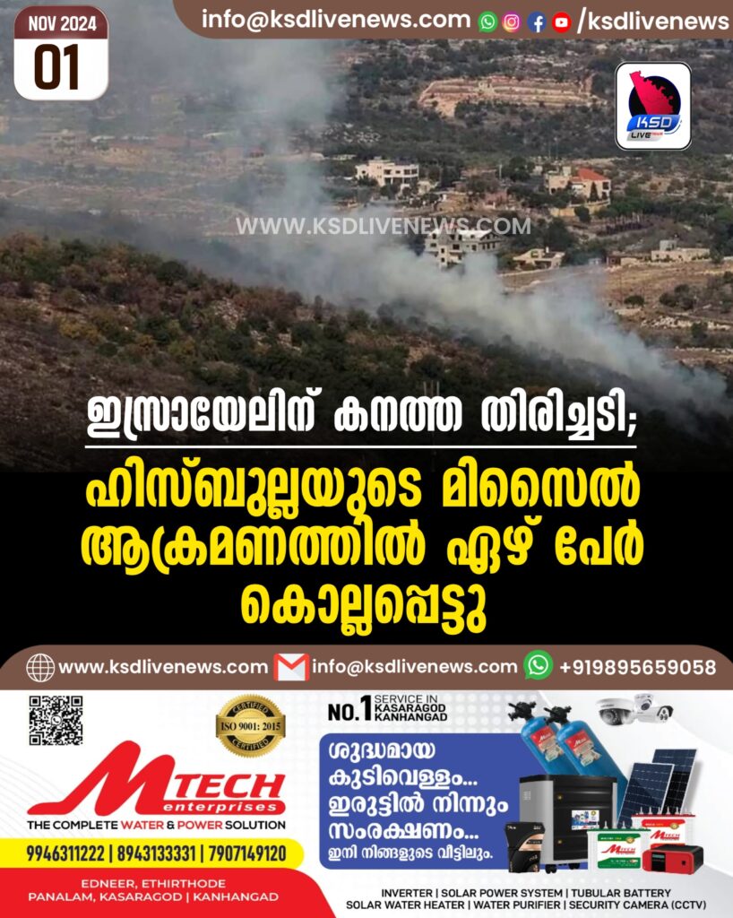 ഇസ്രായേലിന് കനത്ത തിരിച്ചടി; ഹിസ്ബുല്ലയുടെ മിസൈല്‍ ആക്രമണത്തില്‍ ഏഴ് പേര്‍ കൊല്ലപ്പെട്ടു