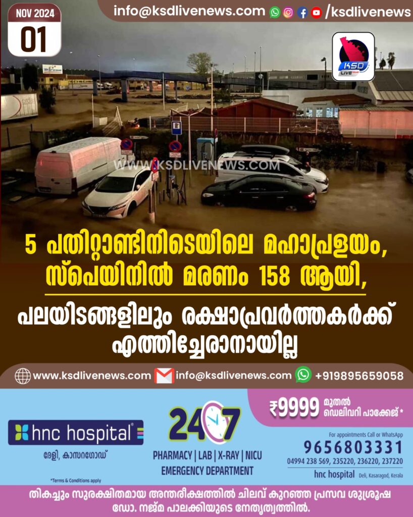 5 പതിറ്റാണ്ടിനിടെയിലെ മഹാപ്രളയം, സ്പെയിനില്‍ മരണം 158 ആയി, പലയിടങ്ങളിലും രക്ഷാപ്രവര്‍ത്തകര്‍ക്ക് എത്തിച്ചേരാനായില്ല