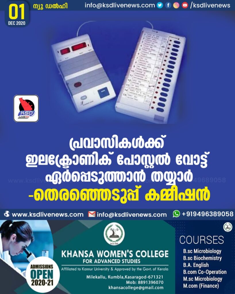 പ്രവാസികള്ക്ക് ഇലക്ട്രോണിക് പോസ്റ്റല് വോട്ട് ഏര്പ്പെടുത്താന് തയ്യാര്-തെരഞ്ഞെടുപ്പ് കമ്മീഷന്