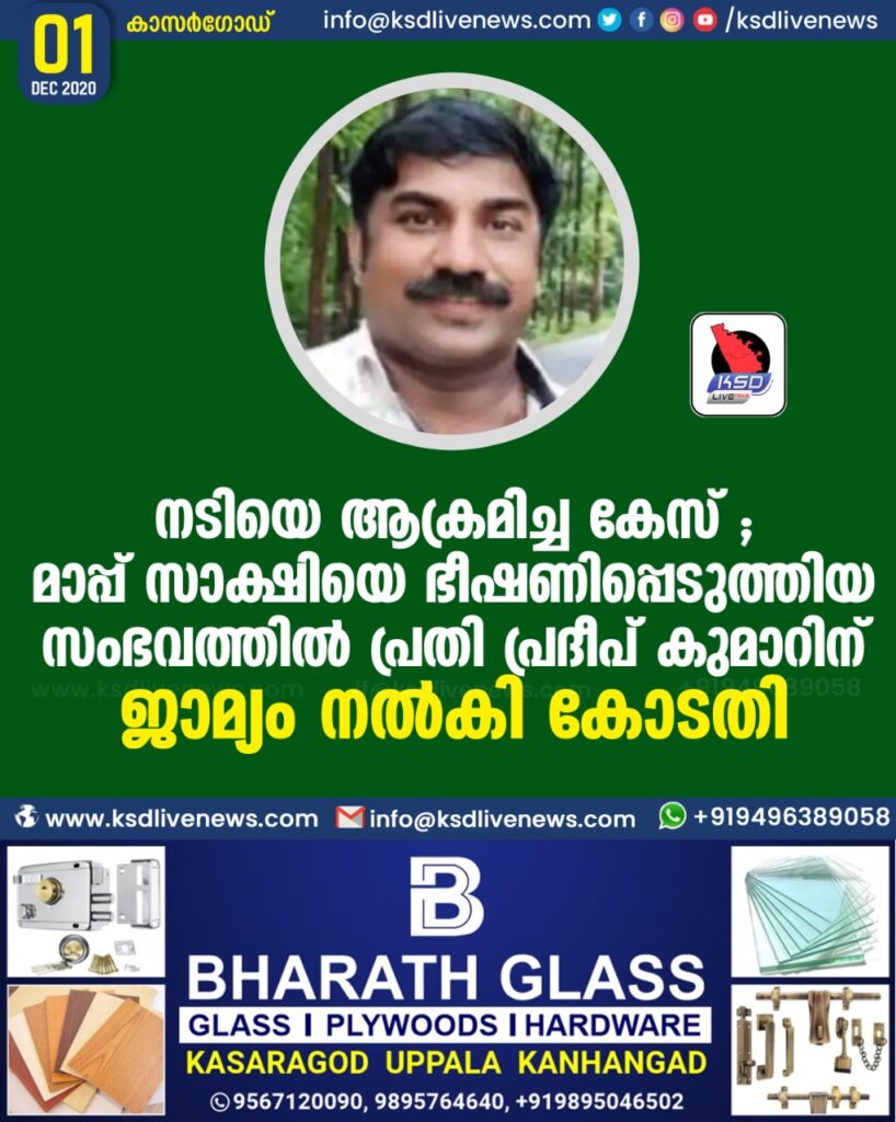 നടിയെ ആക്രമിച്ച കേസ് ; മാപ്പ് സാക്ഷിയെ ഭീഷണിപ്പെടുത്തിയ സംഭവത്തിൽ പ്രതി പ്രദീപ് കു മാറിന് ജാമ്യം നൽകി കോടതി