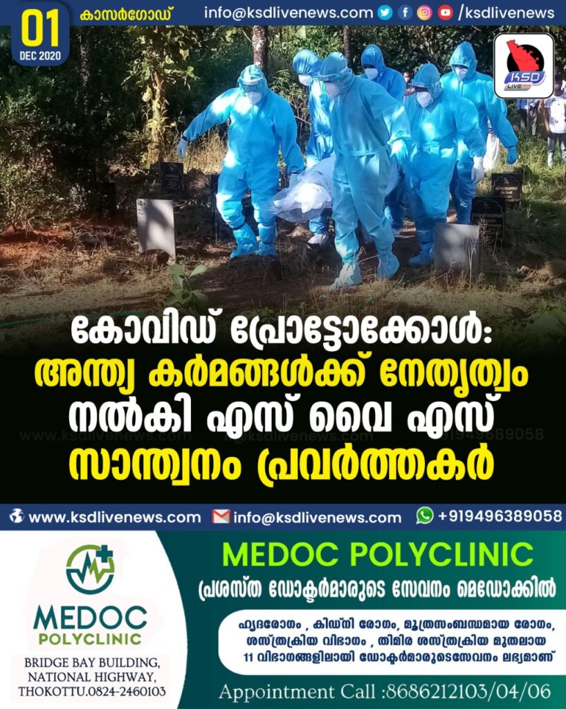 കോവിഡ് പ്രോട്ടോക്കോൾ : അന്ത്യ കർമങ്ങൾക്ക് നേതൃത്വം നൽകി എസ് വൈ എസ് സാന്ത്വനം പ്രവർത്തകർ